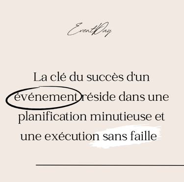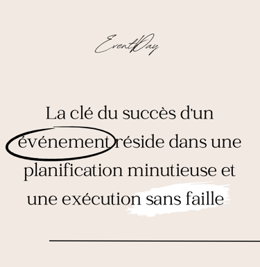 Qu'il s'agisse d'un mariage, de fiançailles, d'un anniversaire, d'une baby shower, d'un baptême, d'une association, d'un gala, d'une fête d'entreprise ou d'un simple dîner en petit comité, Event Day travaille sans relâche pour vous satisfaire au mieux.